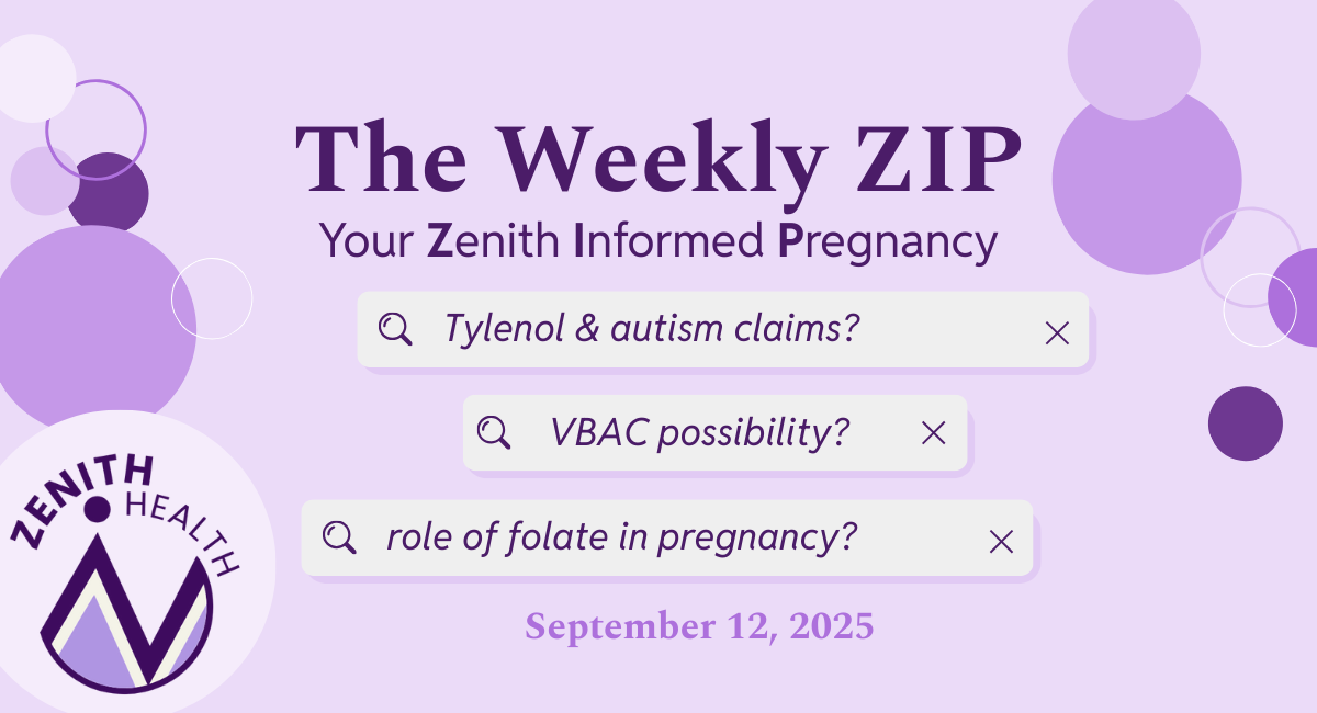 Your Zenith Informed Pregnancy - a weekly newsletter covering the evidence behind three of the week’s top pregnancy questions, and a highlight on cool new pregnancy research or articles the Zenith team is reading