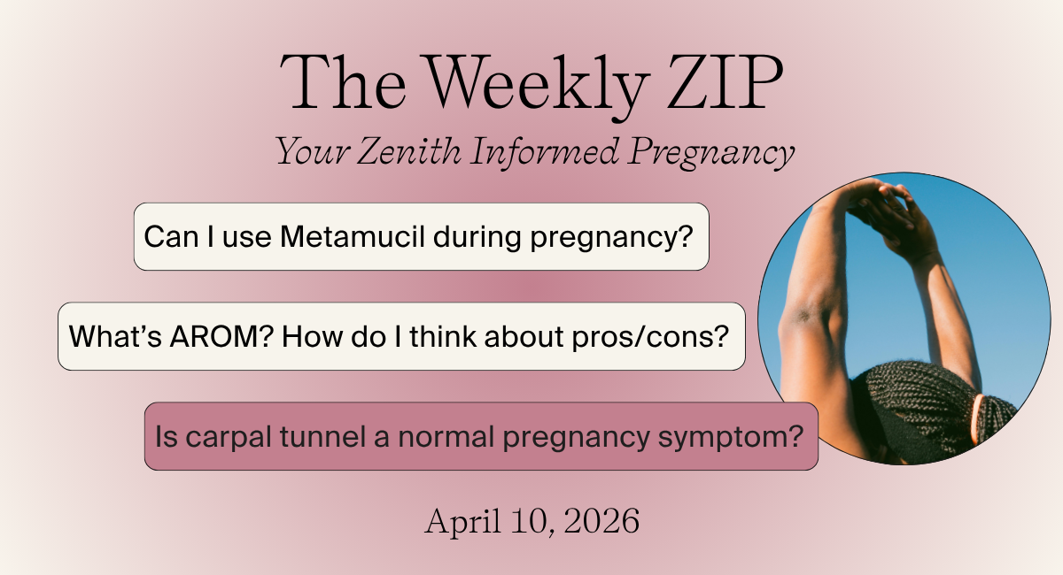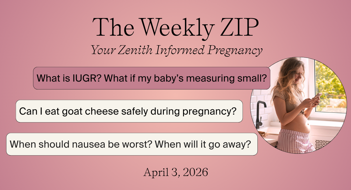 Your Zenith Informed Pregnancy: a weekly newsletter breaking down the evidence behind the week’s top pregnancy questions, and a highlight of the most interesting pregnancy-related read of the week